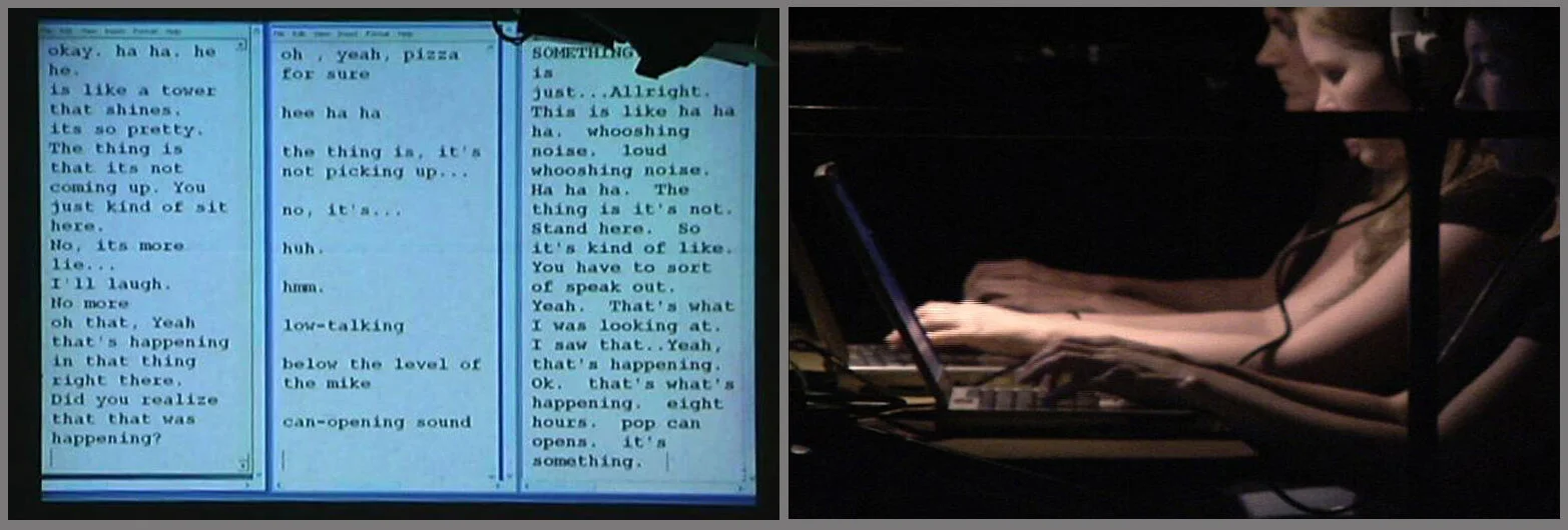 Four male performers speak the words of four women’s stories of desire in time with video interviews projected onto their torsos.